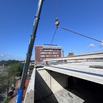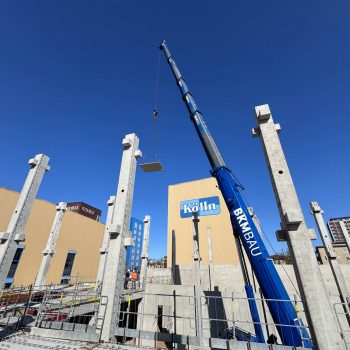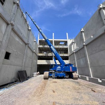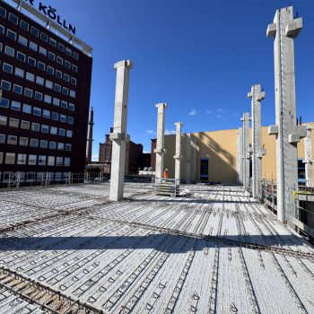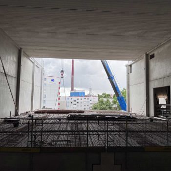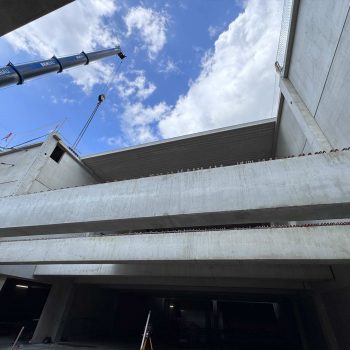 Für die Konstruktion in Fertigteilbauweise haben wir rund 500 Elemente aus Stahlbeton und Spannbeton produziert und diese just-in-time zur Baustelle geliefert, wo sie von unseren Montageteams fachgerecht montiert wurden. Das Gesamttragwerk wird kombiniert mit Zwischendecken aus 120 Fertigdecken und 220 Spannbeton-Hohldecken.