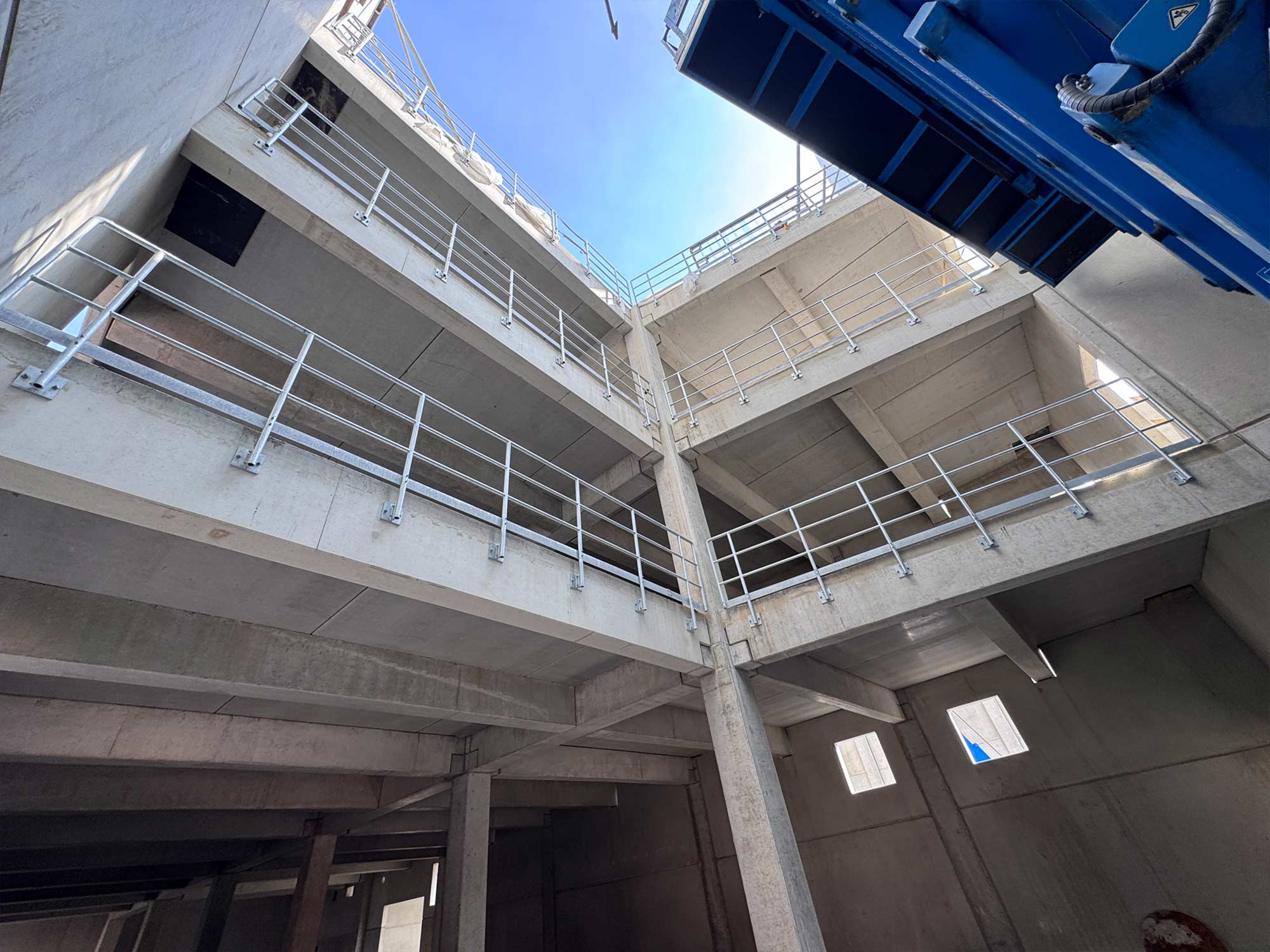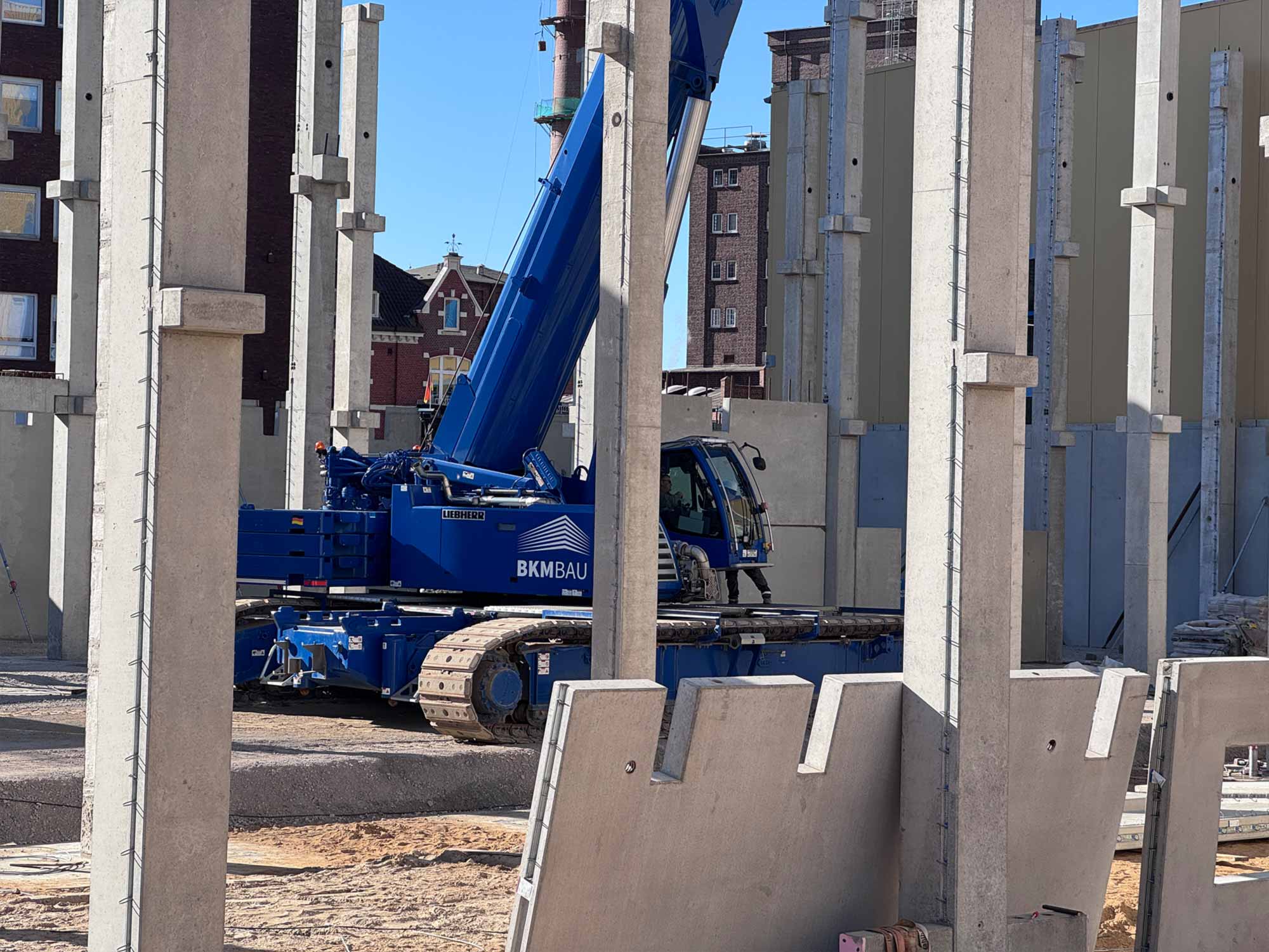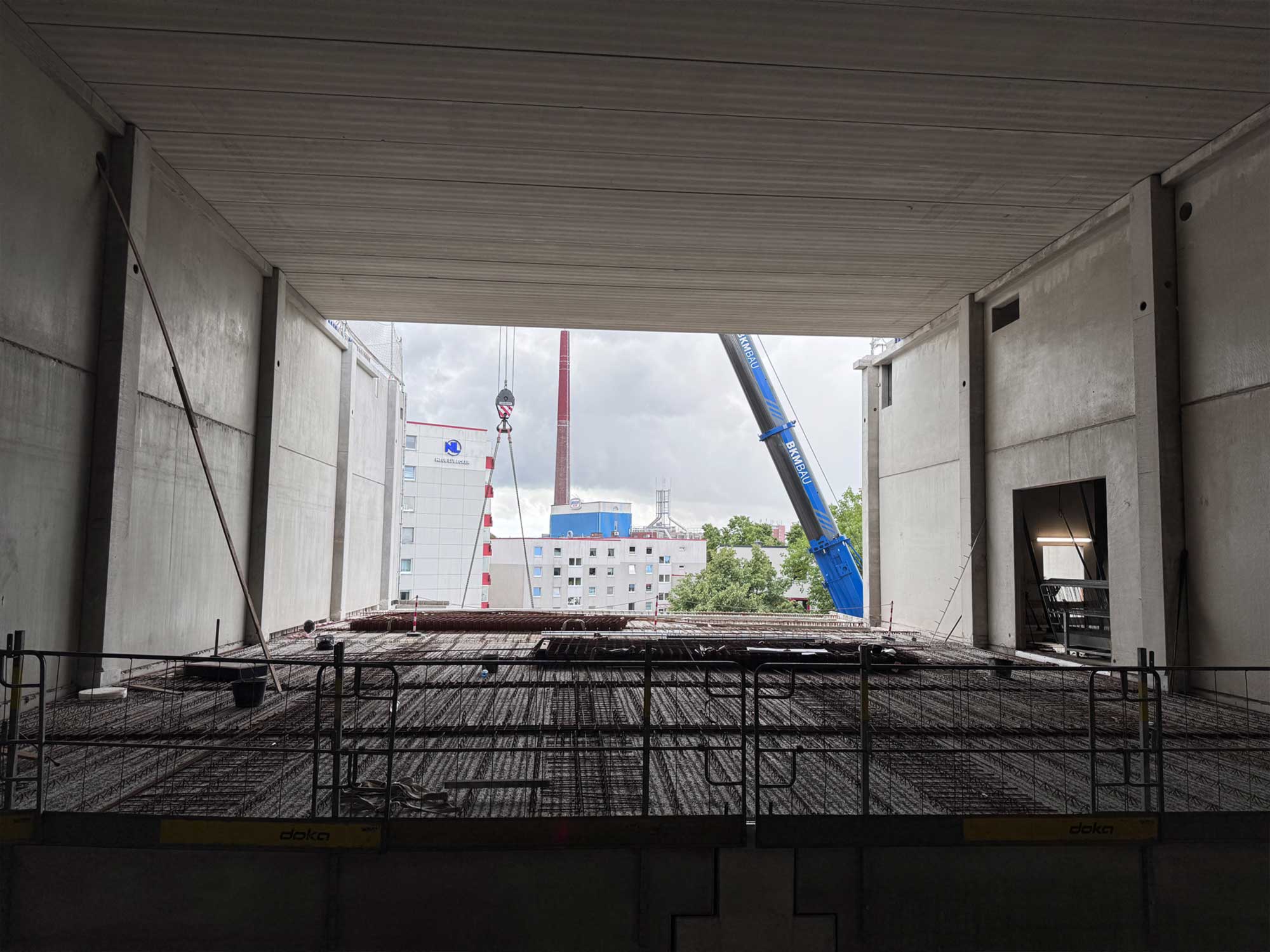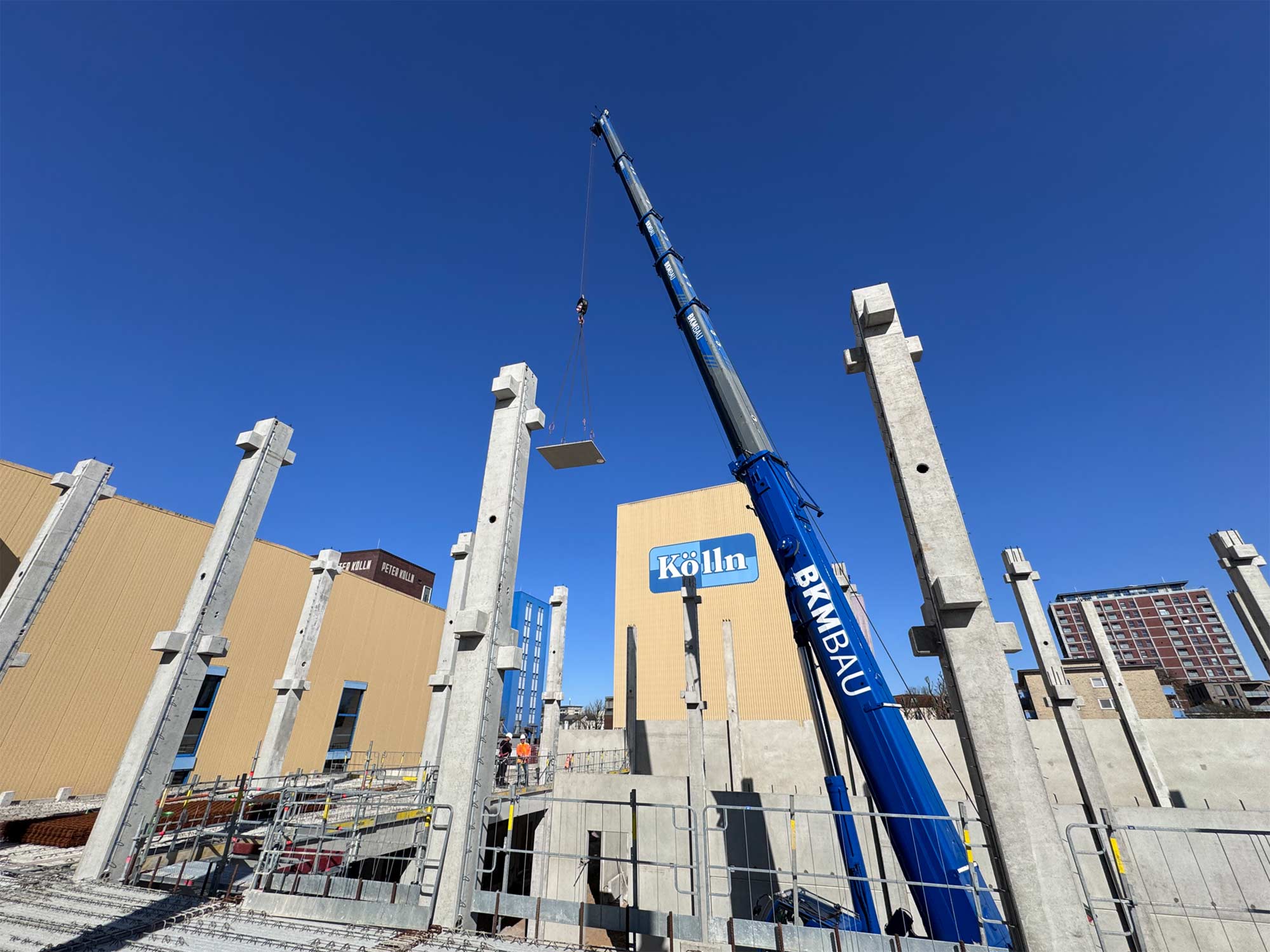 Für die Konstruktion in Fertigteilbauweise haben wir rund 500 Elemente aus Stahlbeton und Spannbeton produziert und diese just-in-time zur Baustelle geliefert, wo sie von unseren Montageteams fachgerecht montiert wurden. Das Gesamttragwerk wird kombiniert mit Zwischendecken aus 120 Fertigdecken und 220 Spannbeton-Hohldecken.
